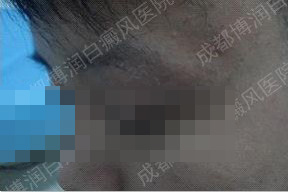 ▲病 史:患者4个月前发现左眼部白斑、曾在当地医院治疗过,外用:不详,治疗无效、今来我院就诊。